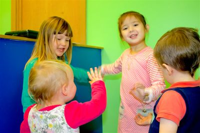 After walking through MHCW main doors, classrooms are directly ahead. Bring your child(ren) to check-in, where one of our friendly nursery workers will be standing.